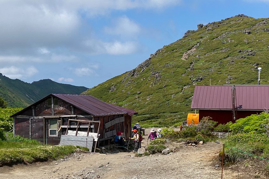 黒岳から下ってすぐのところに山小屋とテントを張る場所がありますが、今回は旭岳にあるテント場を目指します。