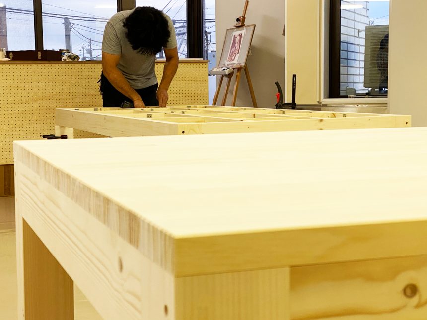 木工作家の方にお願いして、陶芸用の作業台を2台制作していただきました。