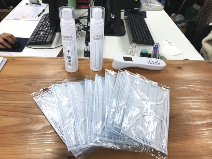 マスク、検温器、手指消毒用アルコールも常備しています!