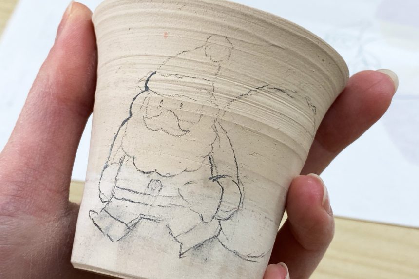 陶芸では12月に向けて作品を作り始めていますが、イラスト担当者が器にサンタさんの絵を描いてくれました。