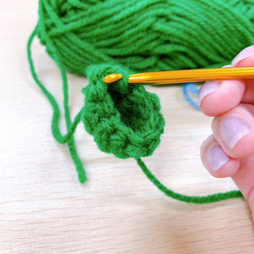 毛糸のバッグを制作された利用者さんに教えていただきながら編み物に挑戦しました。