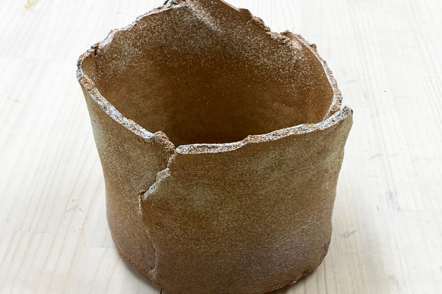 ろくろを回して作ると、大きなものになると作業が大変になってしまうのですが、粘土を伸ばして板にしてから作る「板作り」という技法で植木鉢を作っています。