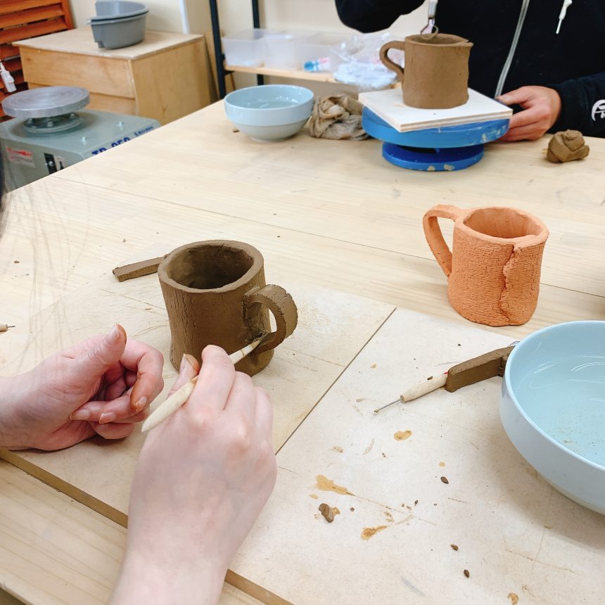 ロクロを使わずに作るマグカップは、初めての方でも完成させることが難しくありません。