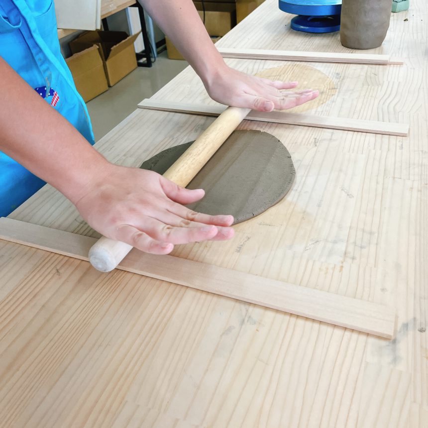 今日は陶芸で板作りの器を作りました。