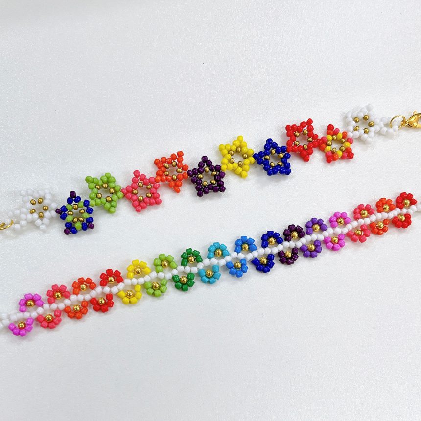 イベントで身に付けられるブレスレットは星と花をモチーフに編んでみました。
