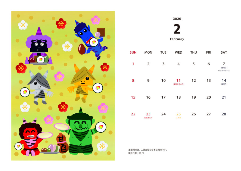 2月の開所予定のお知らせです。